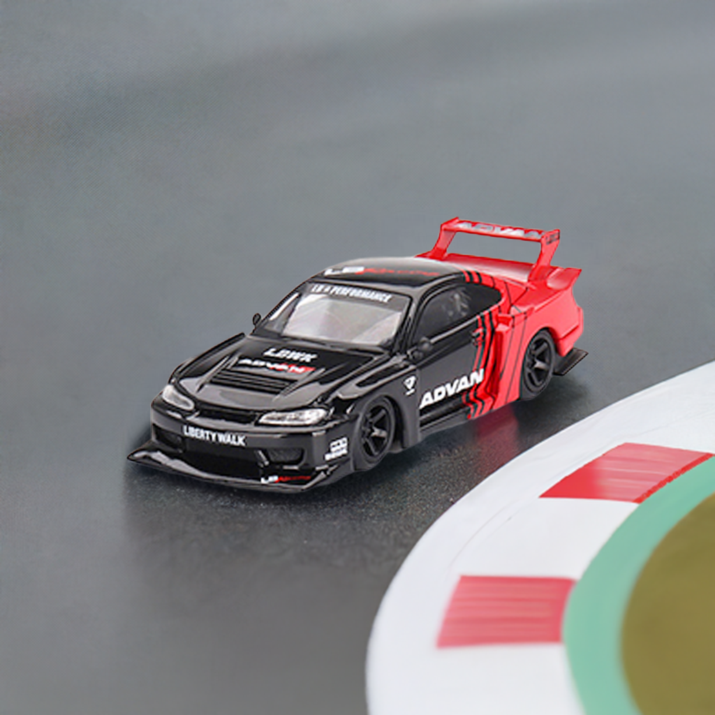 This limited edition 1:64 scale die-cast model from Mini GT features the Nissan S15 Silvia with a LB-Super Silhouette body kit and ADVAN livery. Impressively detailed, it is a must-have for any Nissan enthusiast.